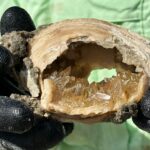 The Digging – Event Staff will assist you throughout the day. The digging is not difficult – any able-bodied person can do it. You will use hand tools – mostly rakes and trowels – to dig through the sediments. As you find specimens, you’ll wash them off with one of the several water hoses we provide. There are also matrix pieces which contain multiple clams. You are welcome to split them apart and pare them down using hand mallet and chisels but don’t do that if there are multiple good clams in it. As us first.